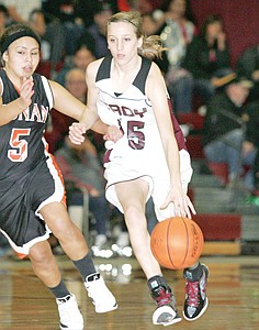 Katie Lundin driving on Ronan's Angela North Piegan in second quarter.
