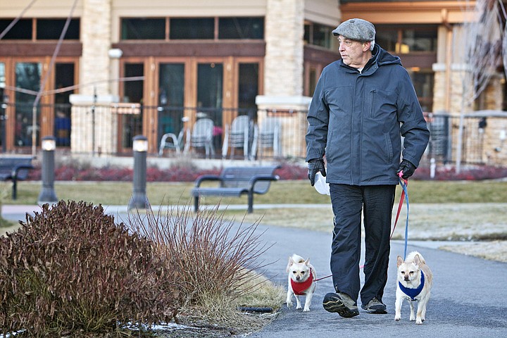 He adopted two small rescue dogs a year ago, named them George and Gracie, and walks them twice daily at the Riverstone pond. It's part of his preparation, too, for Spokane's Bloomsday, which he has never, ever missed, starting from year one. He's one of those perennials, never gives up, never stops.