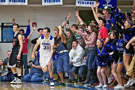Colbert tied it with 2:13 left on a layup following a Viking turnover. Coeur d’Alene had the ball the rest of the game. In the waning seconds, Higbie missed a spinning jumper in the lane, and the rebound deflected off a sea of hands and out of bounds. One official ruled it Post Falls ball, but was overruled by another official, and the Vikings had the ball with 2.8 seconds left.