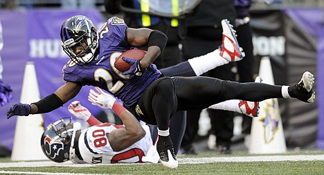 Notes: Baltimore improved to 6-0 against Houston, 2-0 this season. ... It was the Ravens' first home playoff win since 2000. ... Foster ran for 285 yards in the postseason, most by a player in his first two NFL playoff games. ... With the Ravens' home win, it's the first time since the NFL went to current playoff format in 1990 that the first seven games have been won by the home team.