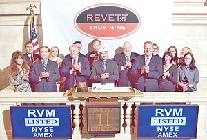 Members of the Revett Troy Mine management team and board of directors joined Cummings during the bell-ringing event. The Company was listed on the NYSE Amex in May 2010.