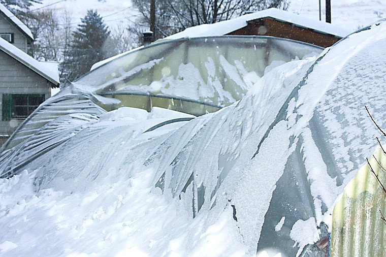 What's left of the greenhouse next to the Mangy Moose Mercantile after the roof collapsed on January 19 due to the heavy snowfall.