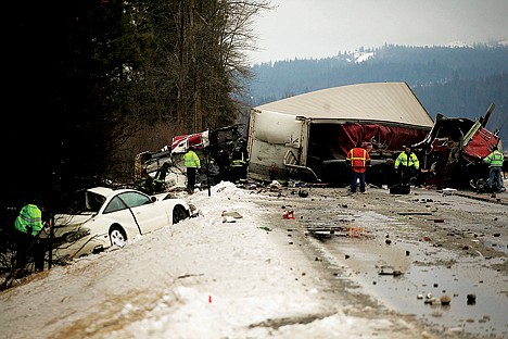 Brian M. Fendos, 39, of Bonners Ferry, was southbound in a 2004 Peterbilt tractor towing an empty gasoline tank trailer when Henager lost control, and took evasive measures to miss Henager as he went off the southbound shoulder. According to the ISP press release, Fendos struck a northbound 2005 Volvo semi tractor towing a livestock trailer driven by Pavlo P. Shevchuk, 21, of Manitoba, Canada. Shevchuk lost control and drove into a northbound ditch.