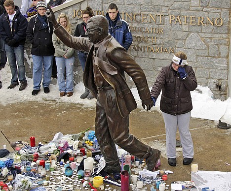 Paterno's sons, Scott and Jay, arrived separately at the house late Sunday morning. Jay Paterno, who was his father's quarterbacks coach, was crying.