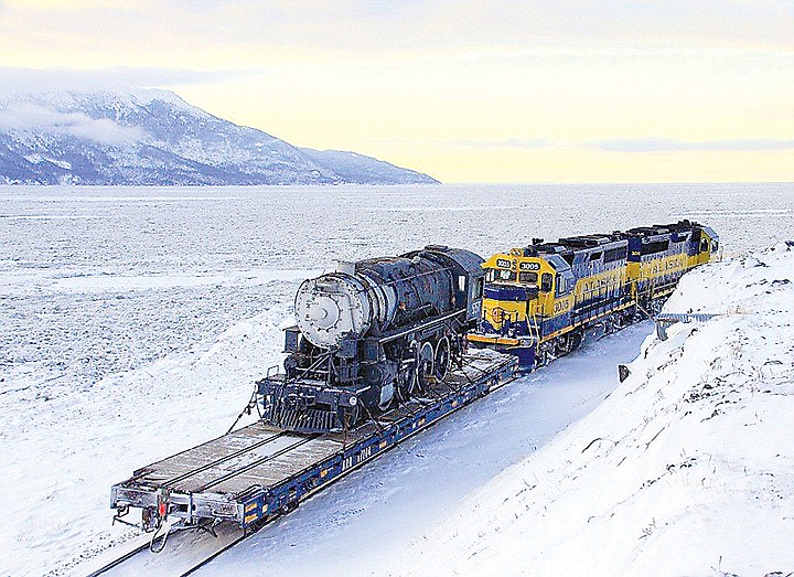 The engine sat by the dock until Jan. 3, when it was untarped and loaded onto a single car and connected to two locomotives for the three-hour trip northwest to Anchorage for refurbishment.