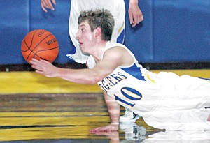 Senior guard Nick Alspaw takes control of a Thompson Falls turnover in second quarter action Friday.
