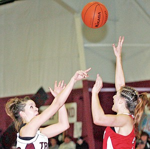 Junior Michaela Curry shoots over senior guard Kimberly Marich to score in the fourth quarter vs. Noxon Saturday at the Troy Activity Center.