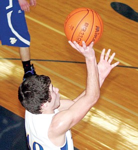 Senior Josh Foote with a one-handed hoop in the third quarter puts Libby up 25-8 vs T-Falls