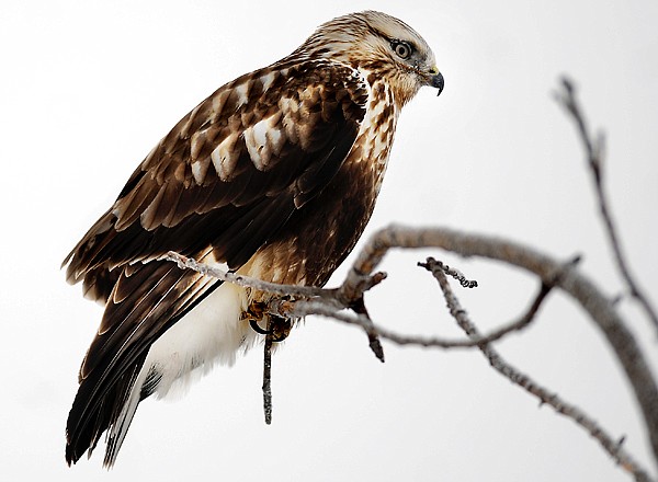 A young gray hawk keeps close watch on a field alongside Rose Crossing on Tuesdaya afternoon north of Kalispell.