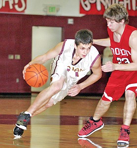 Junior guard Gabe Hickman drives in low with less than a minute remaining in the fourth quarter vs. Noxon.