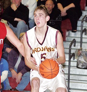 Senior Ryan Rayson deep in the corner looking to pass in the third quarter vs. Noxons Red Devils.