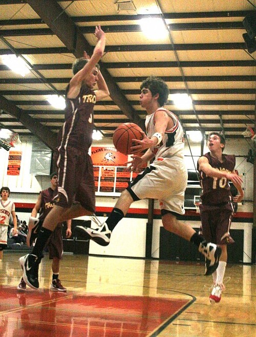 Horsemen senior Brandyn Smith manuveurs within the paint against the Trojans Friday night.