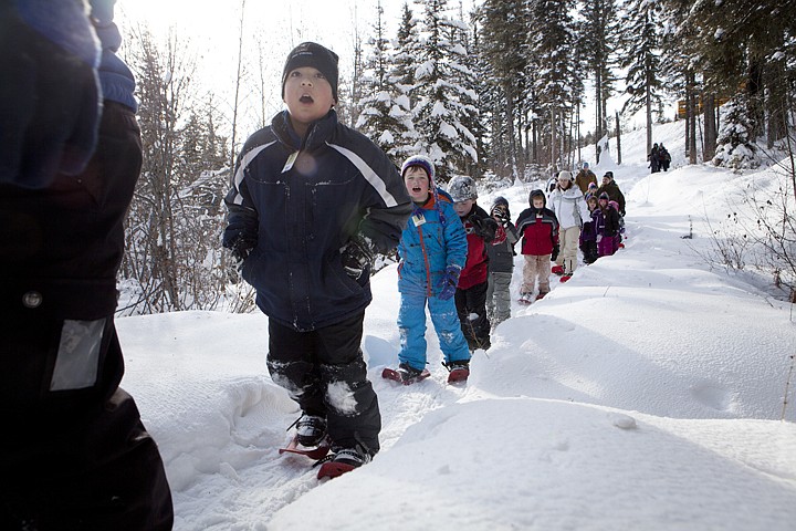 Elrod students snowshoe Friday morning at Big Mountain as part of the Junior Snow Ranger Forest Service program.