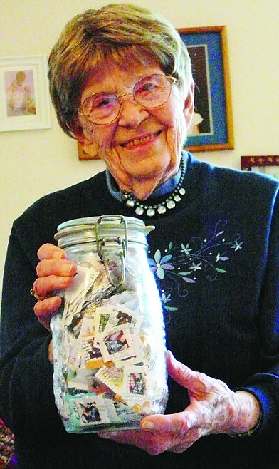 Polly Nikolaisen, 91, collects canceled stamps to send to a Norwegian institution called Tubfrim, which sells the stamps to collectors to raise money for tuberculosis research as well as to help handicapped children.
