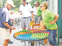 Joni Barnes makes sure every golfer only takes one shot glass of schnapps.