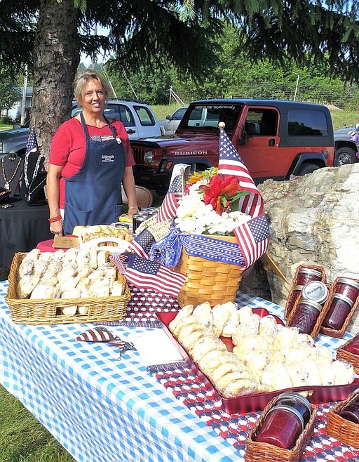 Robin Gile has become popular for her scones and jams shows her American pride at the Thompson Falls Farmers Market.