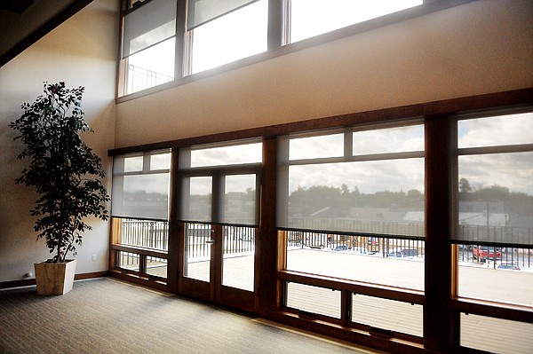 The common area on the second floor looks over one of the larger decks at Sykes on Tuesday, July 3, in Kalispell. The area is currently empty but was being measured that day for new furniture.