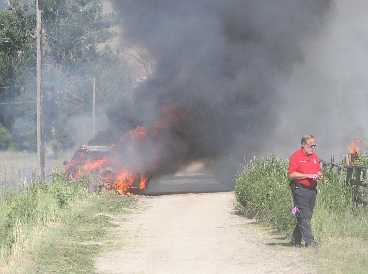 PLAINS - A vehicle randomly caught fire late Friday afternoon off Montana Ave. and River Road East in Plains.