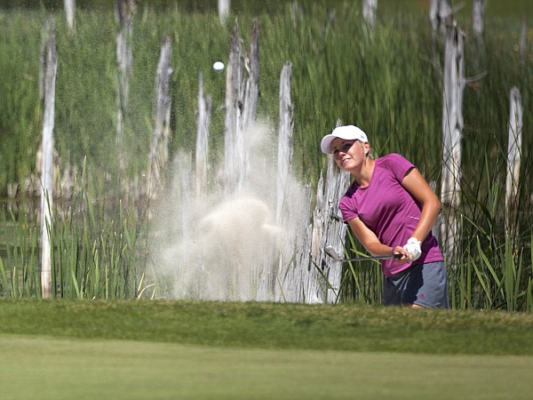 Maggie Crippen of Missoula digs her way out of a bunker in the Fourth of July Tournament at the Whitefish Golf Club on Saturday. Crippen tied for second.