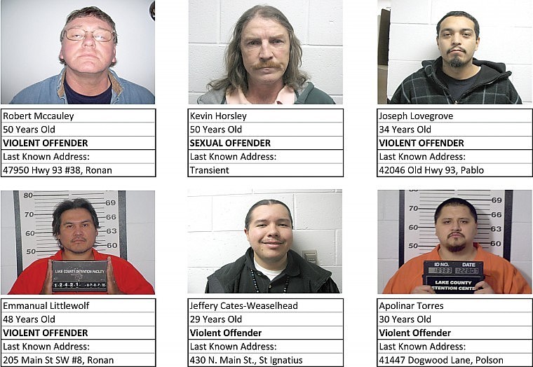 Please contact the Lake County Sheriff’s Office at 406-883-7301 or the SVOR compliance division at (406) 883-8024 with any information on the whereabouts of these individuals. You may find additional information on the Montana State SVOR website located at www.doj.mt.gov/svor