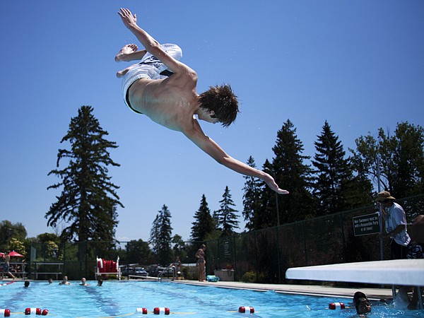 Lane Appelt, 13, from Kalispell front-flips off the diving board at the Woodland Water Park in Kalispell on Monday, July 9.