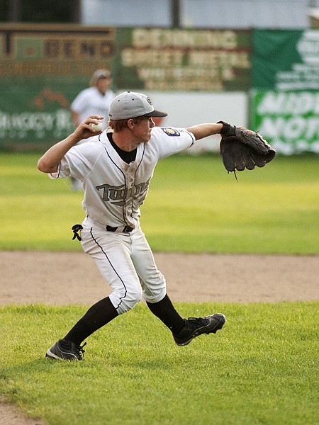 Glacier Twins third baseman Shane Marcial make the play on a ground ball during Monday nights game against the Great Falls Chargers at Kalispell High School.