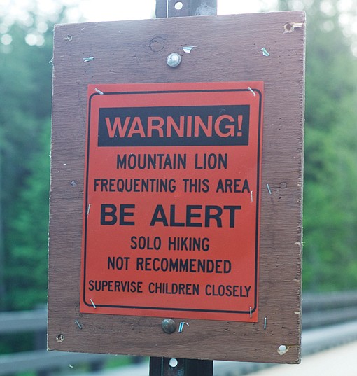 Park officials posted signs in the area warning about mountain lions. Visitors are advised not to hike alone and to keep an eye on small children.