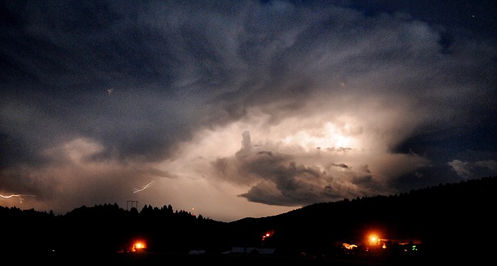 Storm clouds light up the night sky north of Somers on Tuesday, July 10.