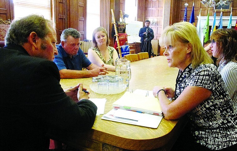 Montana Gov. Brian Schweitzer, left, is shown meeting with relatives of convicted murderer Ronald A. Smith, who are seeking executive clemency for the death row inmate, Friday in Helena. Schweitzer has indicated he is undecided on the question of clemency for Smith.