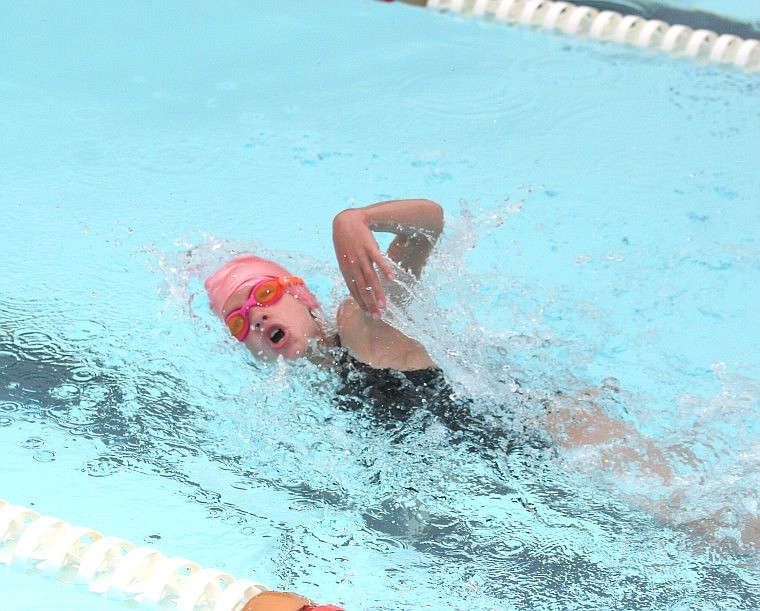 Darian Cremer, 8, of Hot Springs takes a breath during her race in the 8 & Under girls 50 meter freestyle. Cremer made the finals in the event.