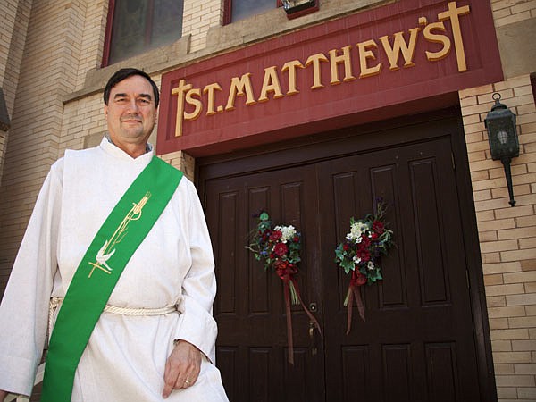 Charlie Harball stands outside of St. Matthew’s Church in Kalispell on Thursday. Harball was ordained as a deacon of the Catholic Church this summer after five years of dedicated study, including weekly trips to Helena.