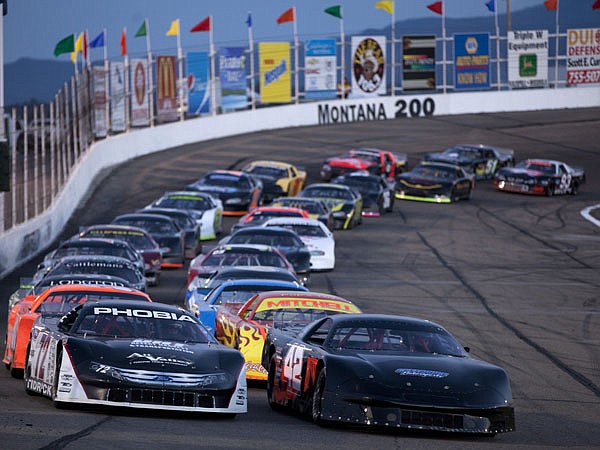 Jeff Jefferson, 42, of Naches, Wash. leads the field of 26 drivers on the back stretch in the Montana 200 at Montana Raceway Park in Kalispell July 21, 2012. (Inter Lake file photo)