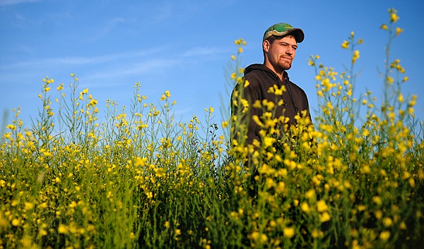 Miles Passmore, a 24-year-old farmer stands in a field of canola on Thursday morning, July 19, near Bigfork.
