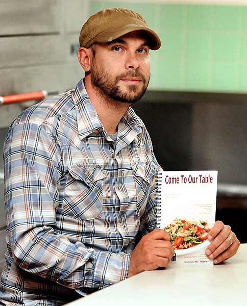 Curt Lamm, associate director of Samaritan House holds a copy of the new Come To Our Table: The Community Cookbook of Sharing and Caring on Thursday, July 19, at Samaritan House in Kalispell.