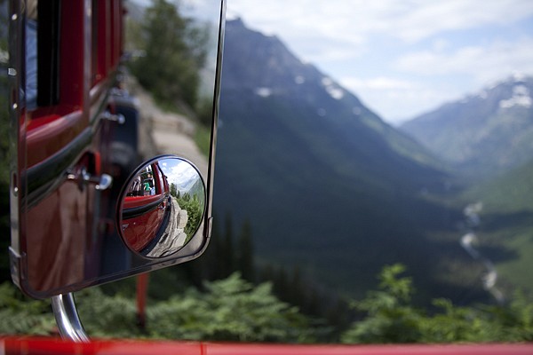 The view from the Big Red Bus looking over McDonald Creek from Going to the Sun Road. A number of tours are offered to guests, with room for 17 passengers on each bus.
