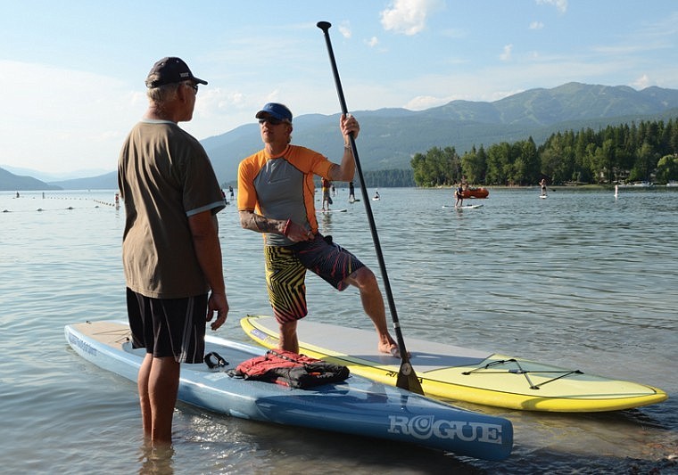 Dozens of paddleboards dotted the lake that afternoon as a line of people stacked up waiting their turn to try out the sport. Schierl was in the water most of the evening, quick to show newbies how to get up on the board with proper paddle form.
