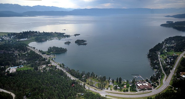 U.S. 93 winds along Flathead Lake in this aerial view.