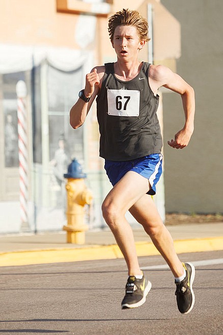 First-place finisher Troy Fraley eyes the finish line Saturday morning during the Boogie to the Bank 5K run in Columbia Falls. Saturday, July 28, 2012 in Columbia Falls, Montana.