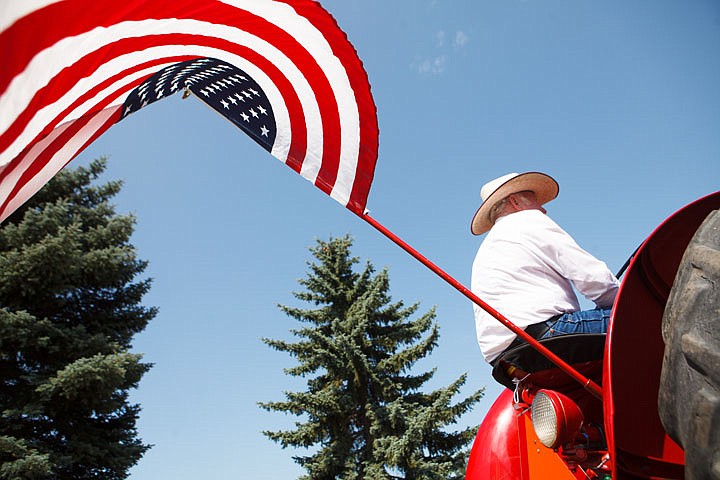Donald Reynolds sits on a McCormick diesel tractor Saturday afternoon before the Heritage Days parade in Columbia Falls Saturday, July 28, 2012 in Columbia Falls, Montana. (Reprints of this photo are available at http://tinyurl.com/heritageflag)