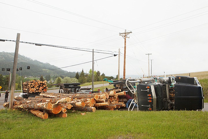 A logging truck rolled over Friday morning while turning onto West Springcreek Road from U.S. 2 west of Kalispell. Friday, June 1, 2012 in Kalispell, Montana.