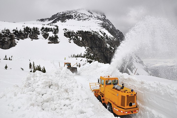 Glacier National Park snow plowing crews continue to clear the Going-to-the-Sun Road after recent spring storms brought 16 new inches of snow, lots of rain, wind and fog in the past week.