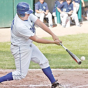 Two RBI base hit for Oliver Grupenhoff in the bottom of the 2nd vs. Kootenai Valley Rangers Wednesday evening.