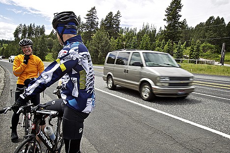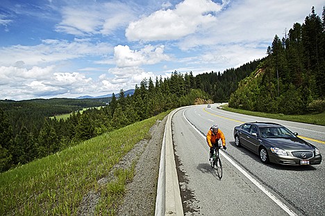 COEUR d'ALENE - As Roger Dunteman pedaled up the long, steep grade south of Cougar Gulch on U.S. 95, a car whizzed past on his left.