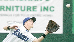 Centerfielder Andrew Haggerty 3rd out top of 2 first game of a doubleheader vs Kalispell A