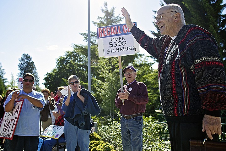 "It's one of the most important days in Coeur d'Alene history," said Keith Peila, one of the supporters holding a sign and wearing a hat with recall slogans. "The people have spoken."
