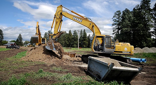 Work continues on a 12 inch water line near Whitefish Stage Road and Rose Crossing on Wednesday afternoon north of Kalispell.