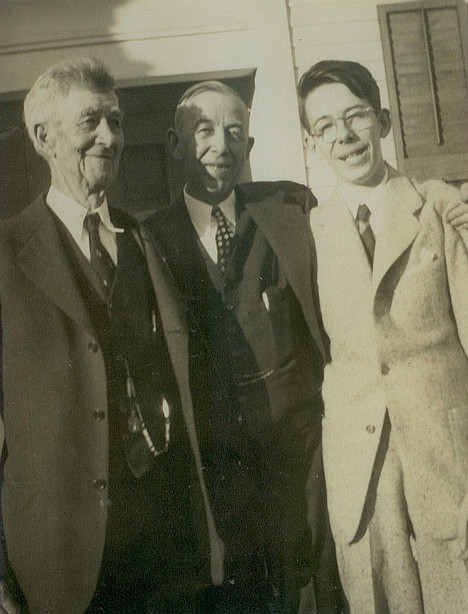 Still, present is linked to past. Kris holds a picture of Harvey Davey, with his son Omri Davey and his grandson "Doc" Robert Davey.