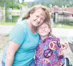 Becky and Kaitlyn Troyer pose for the camera after Kaitlyn had snagged a .57 pound cutthroat out of the heavily stocked Roosevelt Park pond. Fish and Wildlife had stocked the pond with 120 brood stock trout, 500 cutthroat and 1,200 rainbow trout. Kids and parents weren’t the only ones to hunt for fish, as an opportunistic osprey soared above, looking for the glint of a trout’s scales.