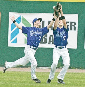 Center fielder Andrew Haggerty and right fielder Cameron Burkes collided, allowing Head Coach Kelly Morford his two RBI single in the 16-3 alumni victory.