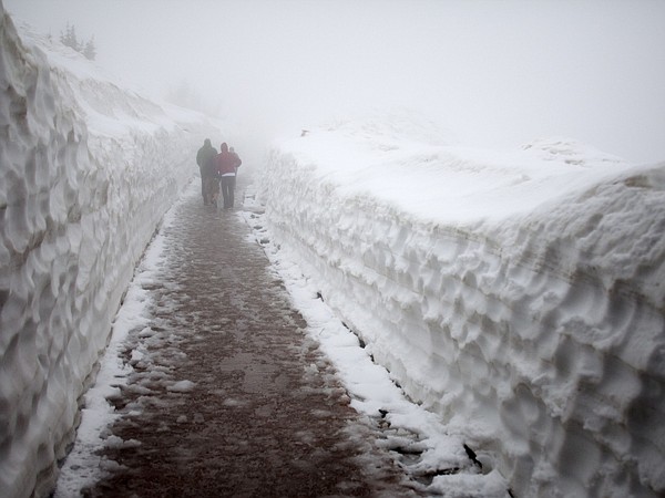 Visitors at Glacier National Park walk along the pathway at Logan Pass on Tuesday, June 19. Going to the Sun Road opened for the first time of the year just before noon on Tuesday.